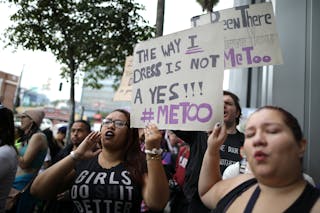 Em Novembro de 2017, os participantes combinaram a ‘Marcha Take Back the Workplace’ e a ‘Marcha dos Sobreviventes de #MeToo’ em Hollywood. Reuters/Lucy Nicholson